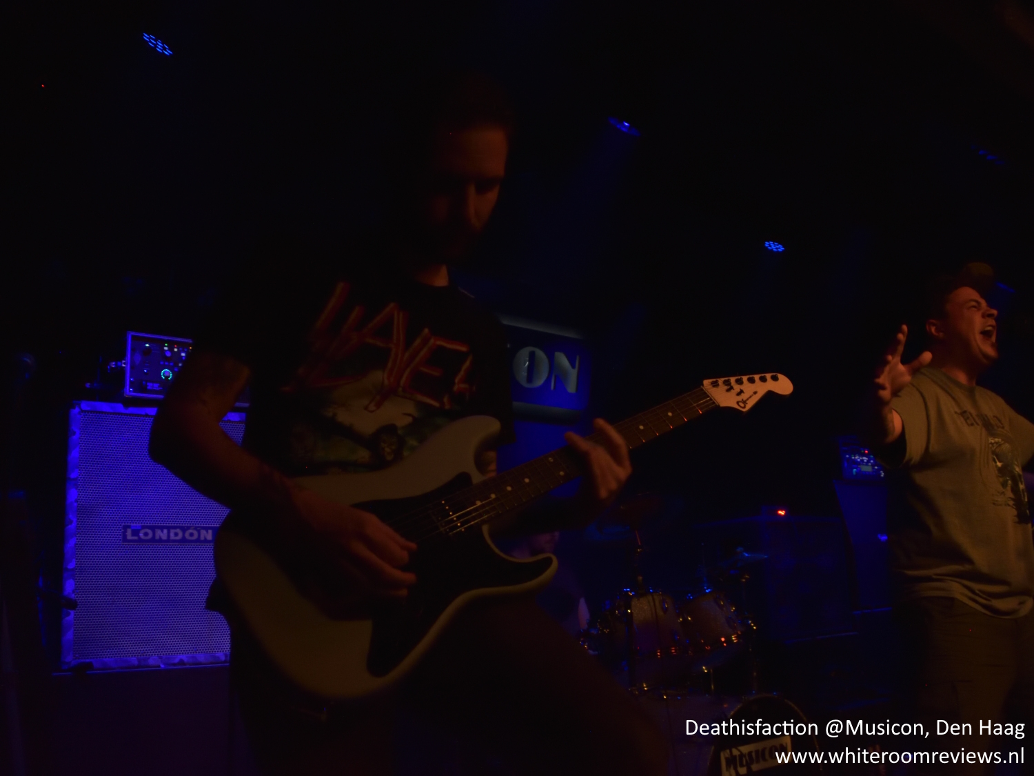Muzikaal was het duidelijk dat deze Nijmegenaren niet echt in een hokje te vangen waren. Gekeken naar de gitaarpartijen had het weg van thrash, terwijl de zanger een blend voorschotelde die zowel thuis zou kunnen zijn in de death, thrash en hardcore. Daarbij gold ook dat de muziek met de nodige verrassende wendingen kwam, waardoor het een gevarieerde set werd. Met zo’n energieke frontman zou op elk ander moment van de avond de menigte in een kolkende pit veranderen, maar ja, ze speelden als opener.