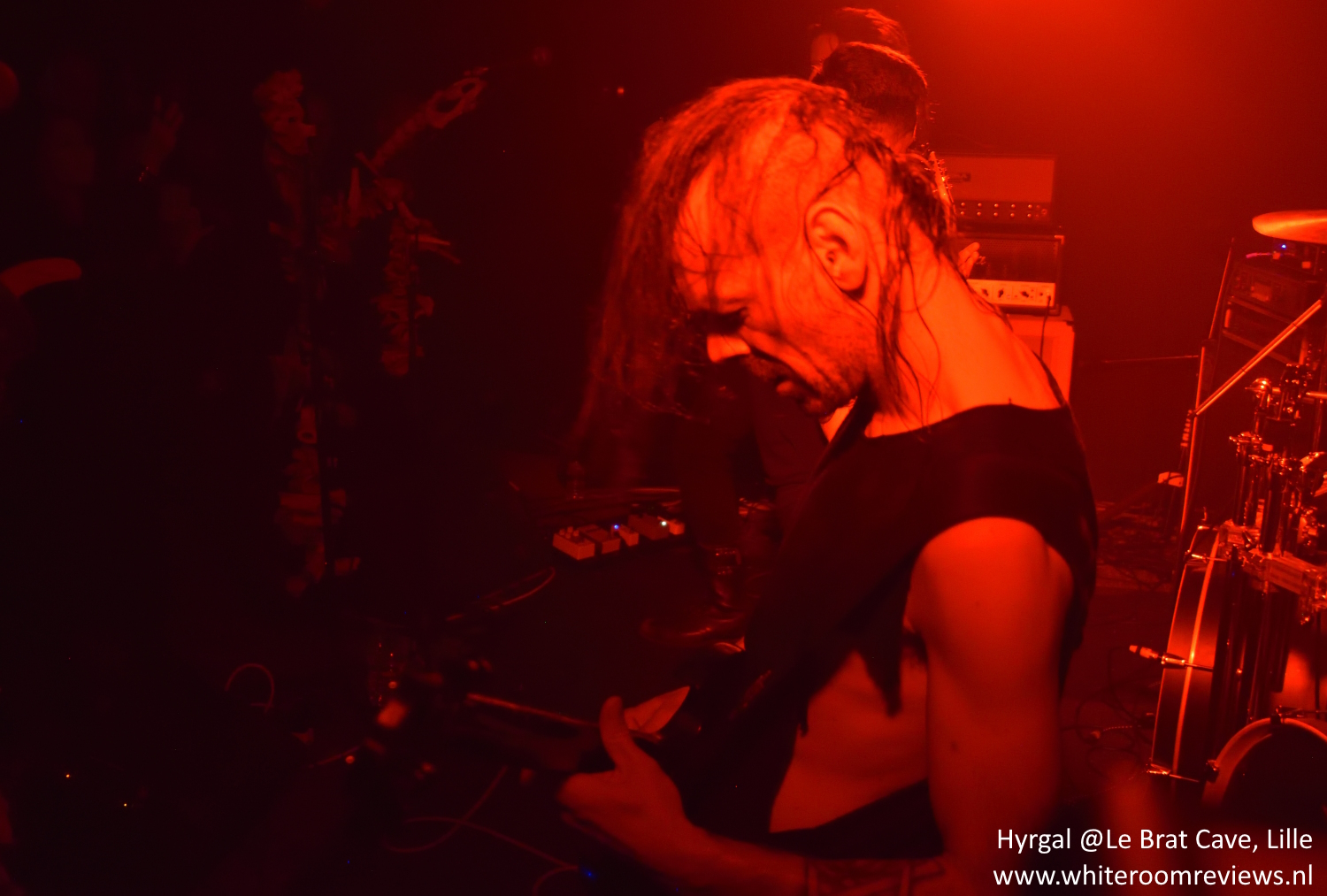 Waar de andere twee bands de aankleding van het podium beperkte tot diensdoende zaken als versterkers, microfoons en dat soort benodigdheden, trok Hyrgal het nodige uit de kast om te imponeren. Hun black metal is duister, wat ook in de attributen doorschemerde. De botten leidden alleen bij sommigen in het publiek ook af, vooral omdat het misschien juist cliché vormend is. Feit was wel dat Hyrgal vol goede moed hun show inzette.