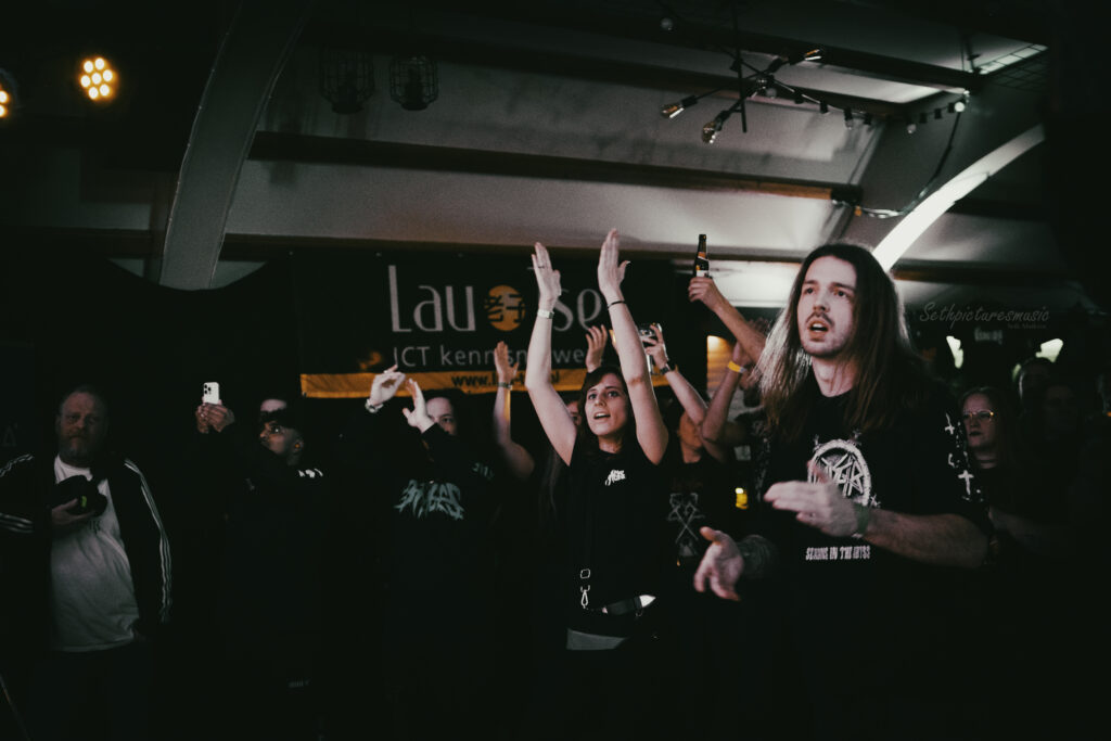 The Devil’s 3rd is eveneens afkomstig uit Brabant en trakteert de bezoekers op een lekkere pot heavy/trash metal. In de gelderen treffen we onder andere de drummer van Braces en zanger Frans Wijnen die we kennen van Razorblade Messiah. Ik heb begrepen dat dit optreden meer als grap ontstaan is, aangezien de bassist de vriend van een van de dames van de organisatie is en de band officieel tussen 2012 en 2018 heeft bestaan. Hoe dan ook, Frans en consorten laten zien en horen dat The Devil’s 3rd zeker bestaansrecht heeft. Vol overgave en energie slingert de band de nummers de zaal in. Waarschijnlijk kent niemand ze, maar dat mag de pret niet drukken, want het publiek weet de muziek op waarde te schatten.