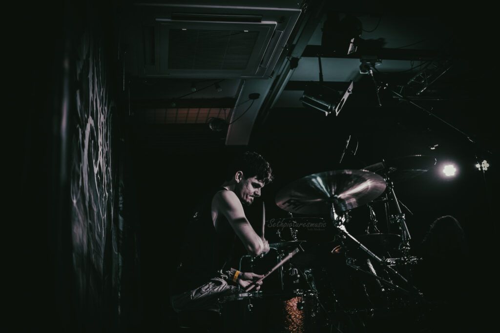Met GogmaGore haalt MOTHBH een pure blackmetalband binnen. Gehuld in corpsepaint en met een altaar met schedels voor op het podium, laat de band de bezoekers eerst in hoge sferen komen met het branden van wierrook. Blijkbaar werkt dit, want naar mate de set vordert zie ik toch ook bij GogmaGore stiekem enkele mensen in beweging komen. De band laat een mix horen van obscure black en deathmetal die in basis redelijk simpel van aard is. Dat maakt dat de nummers allemaal wat op elkaar lijken. Een paar blastbeats erin zouden mijns inziens de nummers naar een hoger niveau kunnen tillen. Voor nu een prima optreden, maar de band komt nog beter tot zijn recht op obscure underground blackmetal festivals.