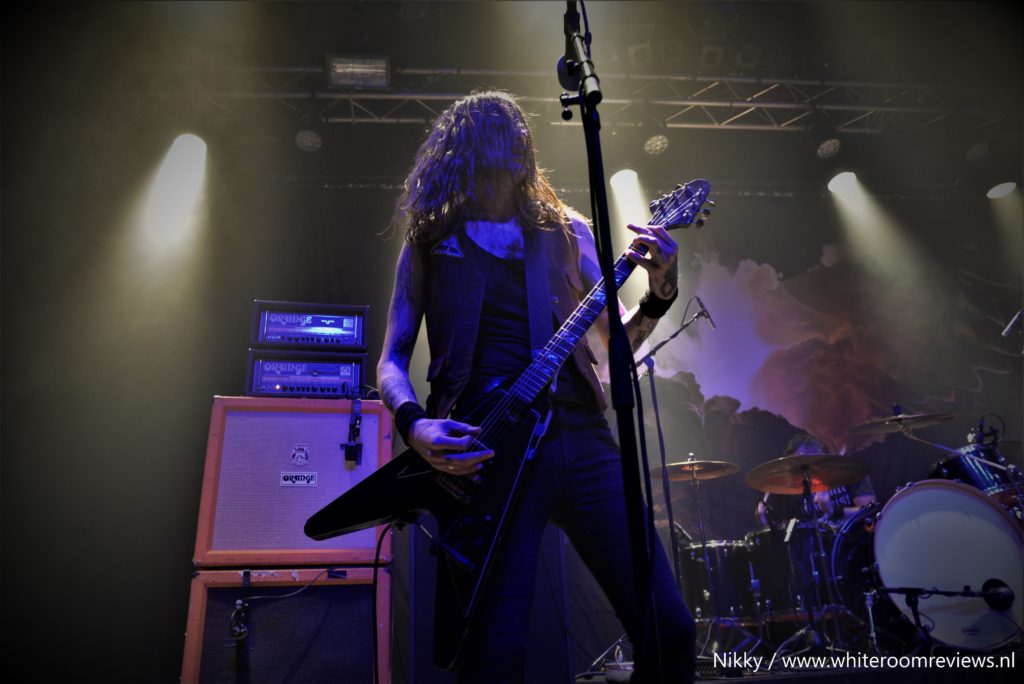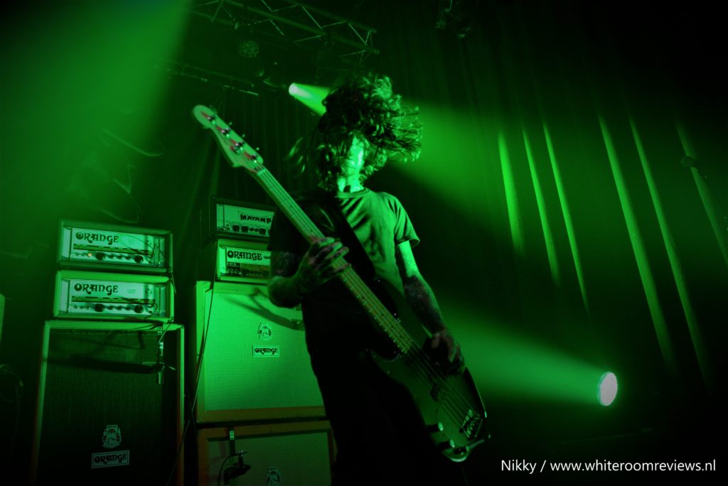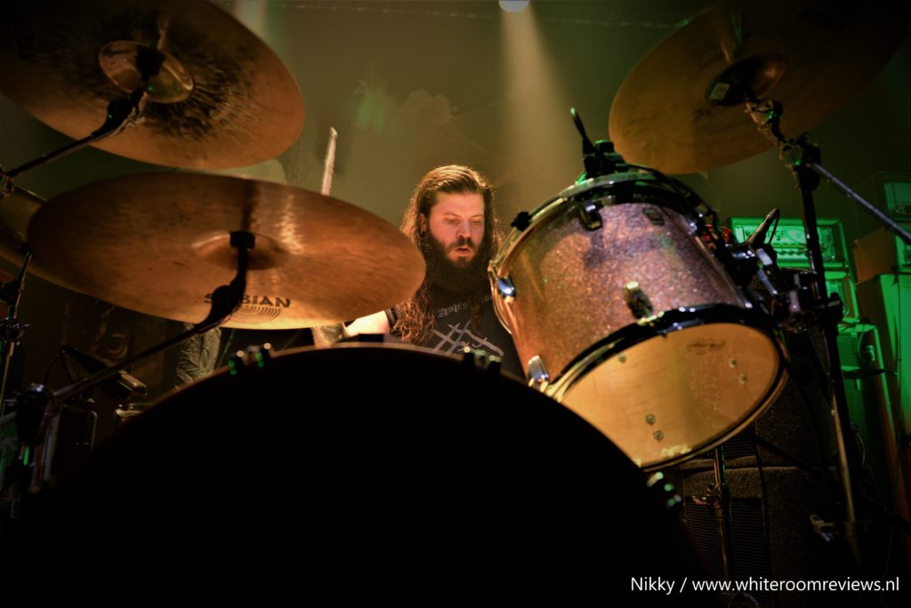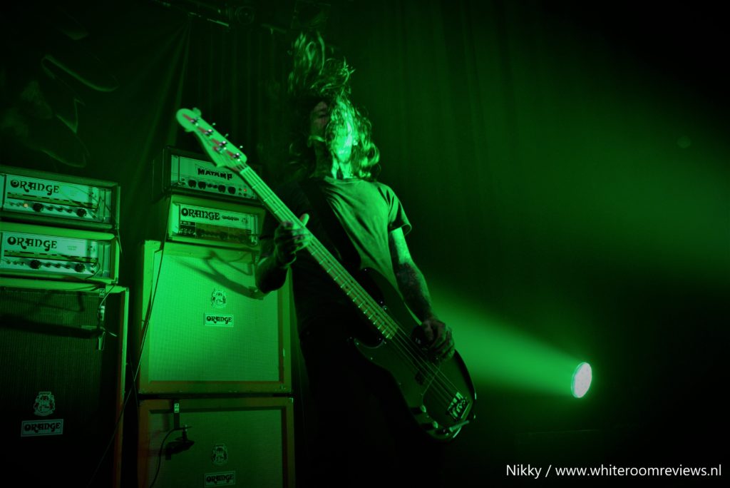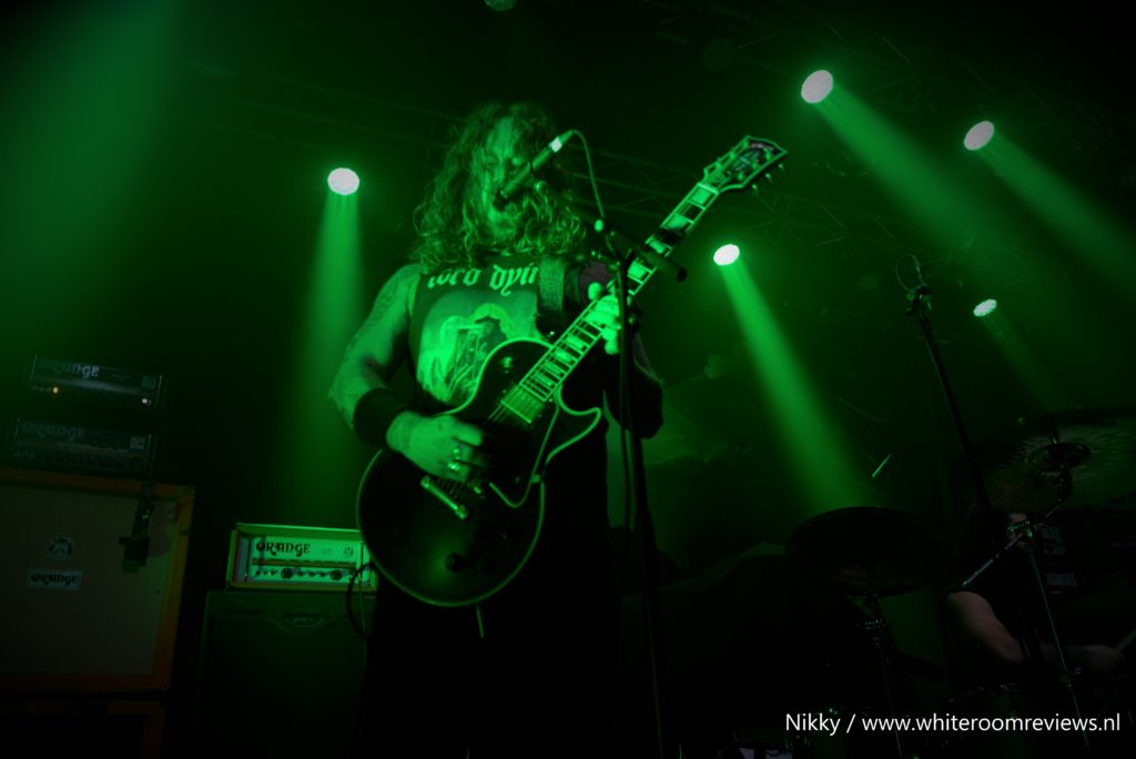 Na een kleine ombouw pauze komen we aan bij het middelpunt van deze avond. Nadat ik dacht dat de muziek niet nog luider kon, kon dat dus wel. Zonder oordoppen hier staan was zeker niet aan te raden. De afwisseling tussen de zware riffs en de melodieuze zangstukken zorgde voor een geheel dat heerlijk te verteren was. Wat echt een verassing was, was dat ze voor ons een show van 1,5 uur op de planning hadden staan. Toen ze ”The Bastard son” speelde kwam de sfeer nog beter naar voren. De lichten waren op een manier afgesteld dat de rook op de banner mee veranderde van kleur. Nadat ze al meer dan een uur bezig waren begon ik zelf wel mijn concentratie te verliezen. Desondanks dat was het een heerlijke show vol met gepassioneerde muziekstukken en trage doordringende riffs. Ze waren erg actief en stonden totaal niet stil tijdens deze show. Zelfs de zanger sprong het publiek in met gitaar en al. In ieder geval was het een heerlijke stoner avondje vol met passie.