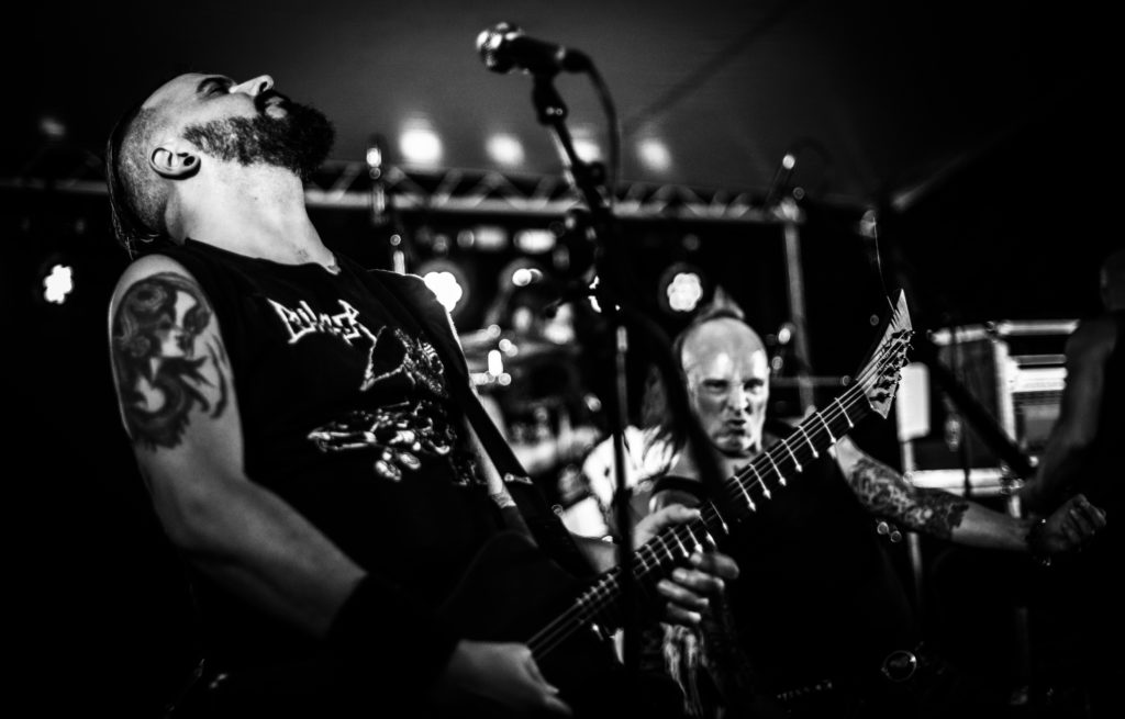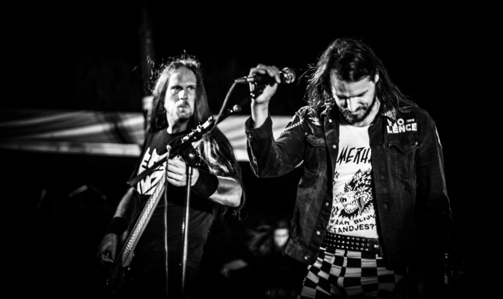 Ondertussen hoorde we op het terrein al wat geruchten gaan over Shuulak namelijk één of andere Ghost imitatie. Nou dat was overduidelijk niet waar. Deze band heeft veel meer heavy metal invloeden dan dat Ghost heeft. Iedereen in de band was anders opgemaakt of helemaal niks. Het geluid stond prima bij hun afgesteld en kwam er goed uit. Ondertussen zou Empty spelen maar die hadden gecanceld wegens omstandigheden. De vervanger voor hun was Bruut. De band Bruut gaat zeker met sprongen vooruit. Dit jaar zijn al meerdere reviews te vinden over hun werk, maar dit optreden sprong er echt uit. Ze waren veel meer op elkaar ingespeeld en het kwam er erg soepel uit. De drie bandleden weten erg goed wat een bruut potje deathmetal inhoud. Ze speelde voornamelijk nummers van hun eerste EP Bloodmoon.