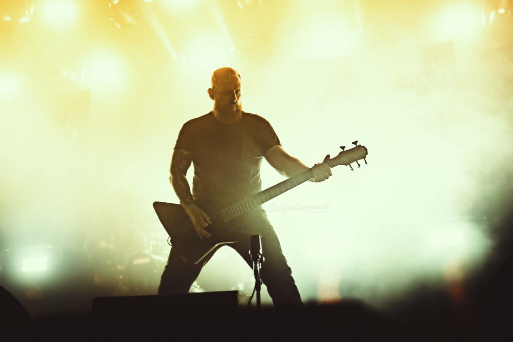Meshuggah sloot de dag af met een knallende show vol precisie en kracht. Vanaf het eerste nummer ‘Broken Cog’ pakte de band het publiek bij de keel met zware riffs, ingewikkelde drums van Tomas Haake en een dikke, strakke sound. Zanger Jens Kidman, die zijn 59e verjaardag vierde, maakte even een grapje met het publiek voordat ze genadeloos doorgingen met keiharde nummers als ‘Bleed’ en ‘Demiurge’. De gave lasershow maakte het plaatje compleet en de pit ging helemaal los. Echt een afsluiter om niet snel te vergeten, perfect voor de eerste editie van South of Heaven!